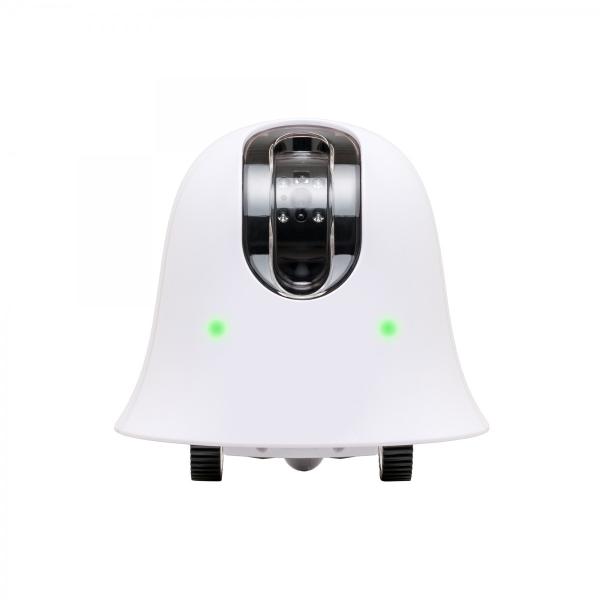 本体の下にタイヤがついた他のお留守番カメラにはない「移動式」タイプで、スマホを使ってカメラ本体を遠隔操作(移動)できるのが大きな特徴。